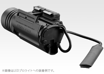 - スイッチ部を自由にレイアウト:約180mmの延長ケーブルにつながったスイッチを、付属のテープ(パイルアンドフック)で好みの位置に取り付け可能。エアソフトガンに装着したLEDプロライトの操作性が向上します。
