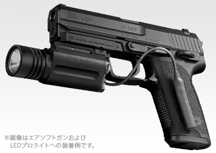 - バッテリー機能と併用が可能:LEDプロライトにリモートスイッチを取り付けたまま、電動ガン ハンドガンタイプに外部バッテリーとして接続することができます。