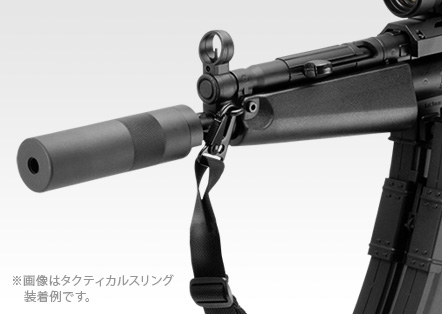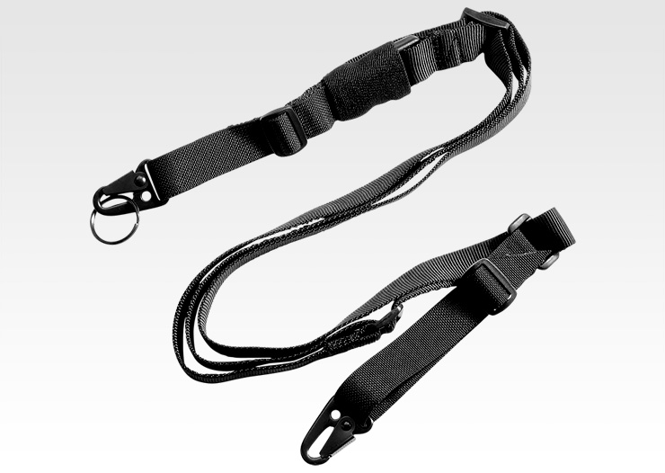 - 3点式スリング:身体にフィットする3点式スタイルから、ワンタッチで射撃ポジションに移行可能です。ジョイントのロックを外すだけで、射撃ポジション用の1点式スタイルとなります。