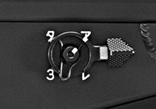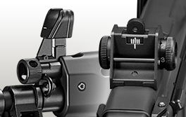 本物同様の手順で、フロントサイトの上下位置調整、リアサイトの左右上下位置が調整可能。リアサイトのメモリには、白いマーキングが入っています。