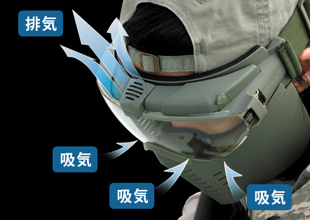 メガネ着用時もくもらない電動ファン付きフルフェイスゴーグル